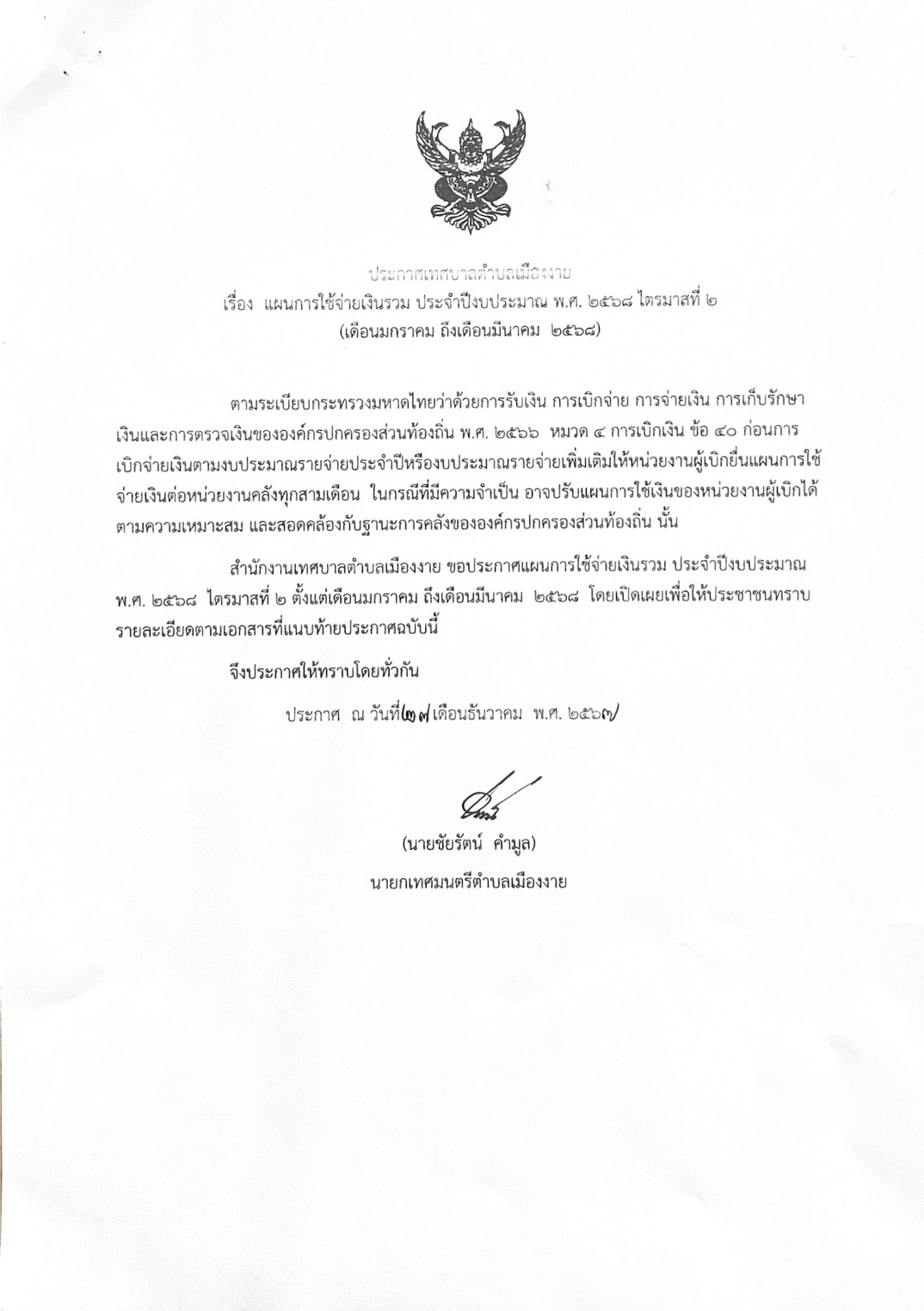 กิจการสภาเทศบาลตำบลเมืองงาย