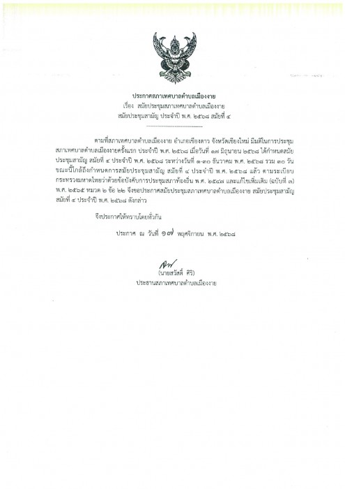 กิจการสภาเทศบาลตำบลเมืองงาย