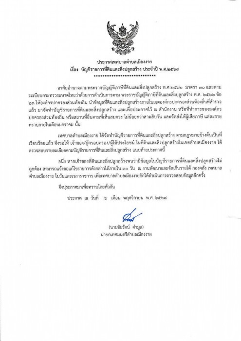 เทศบัญญัติเทศบาลตำบลเมืองงาย